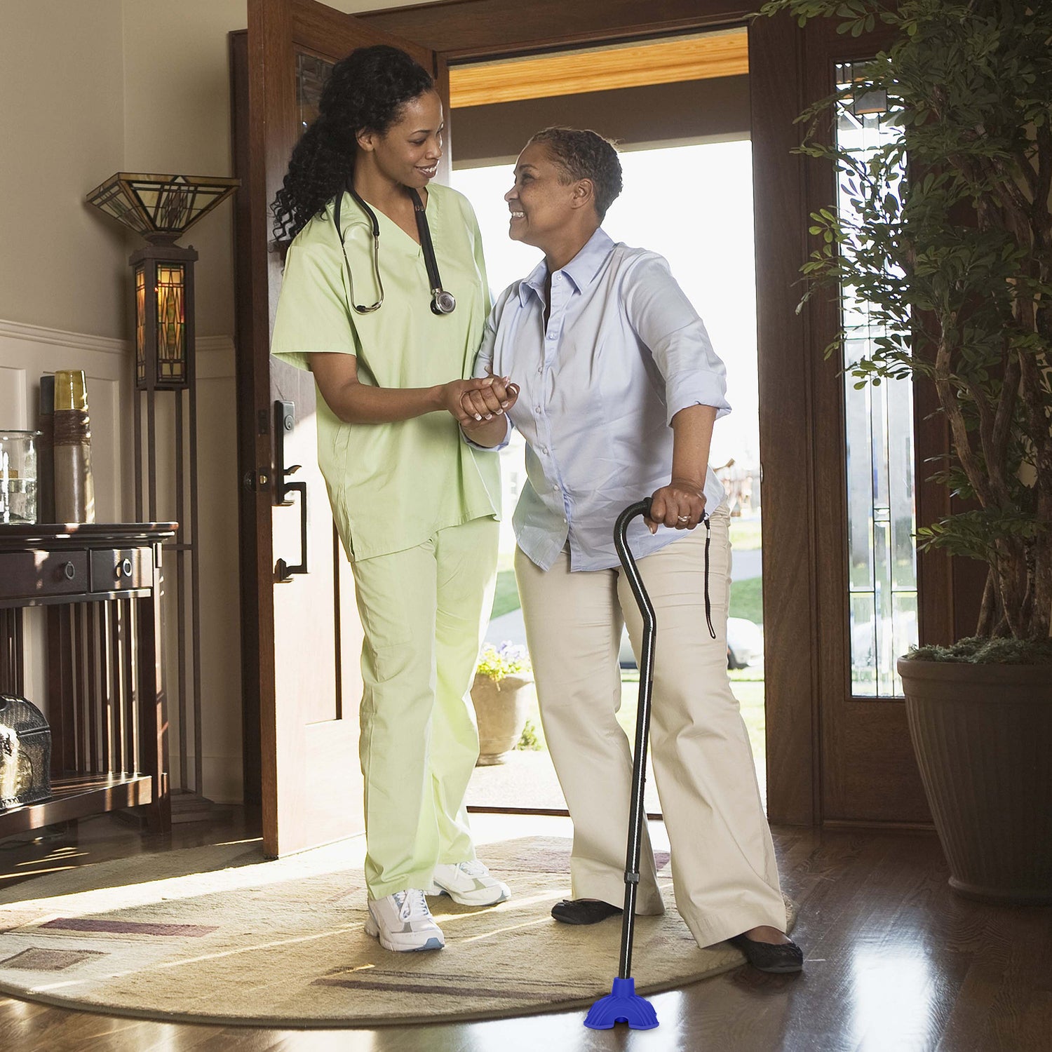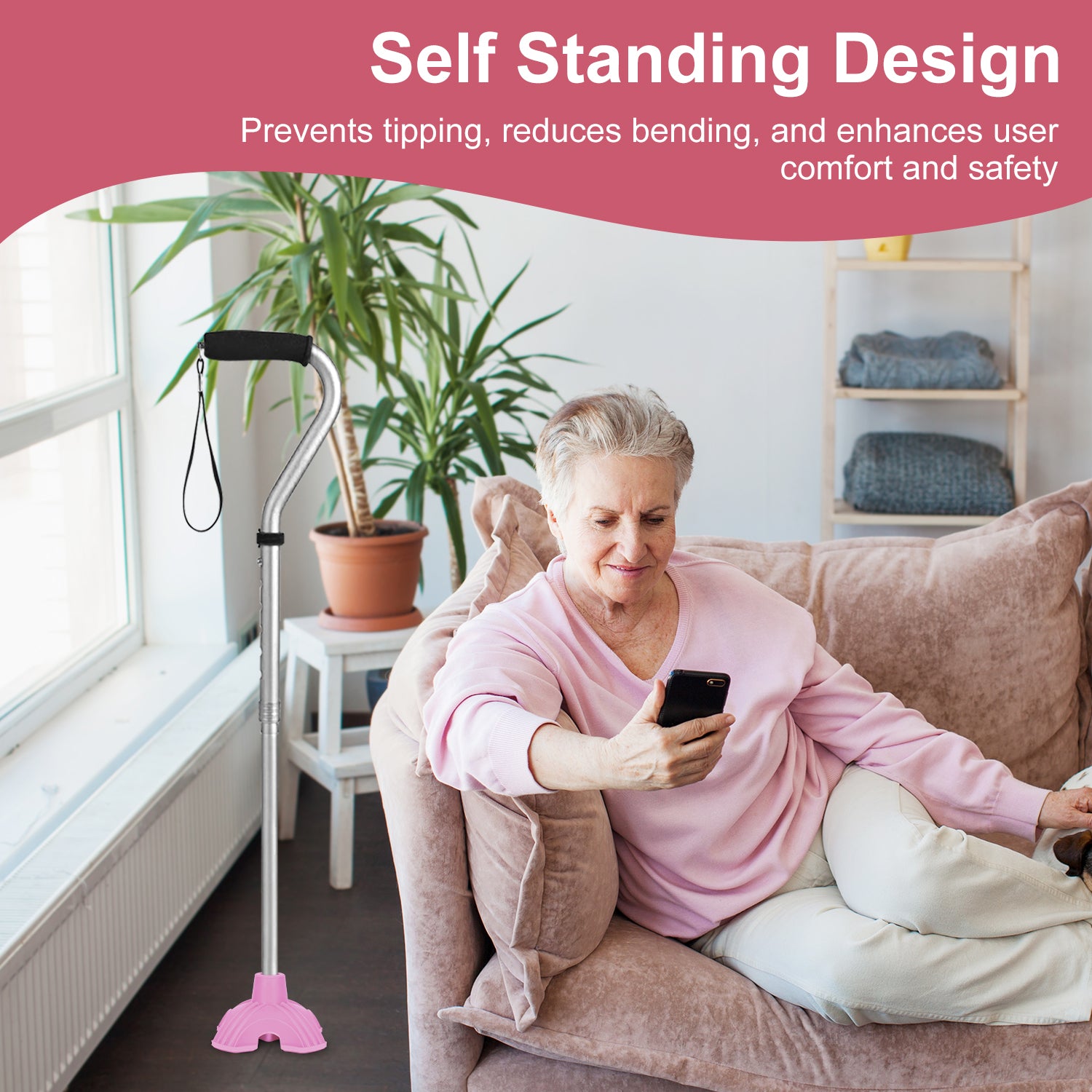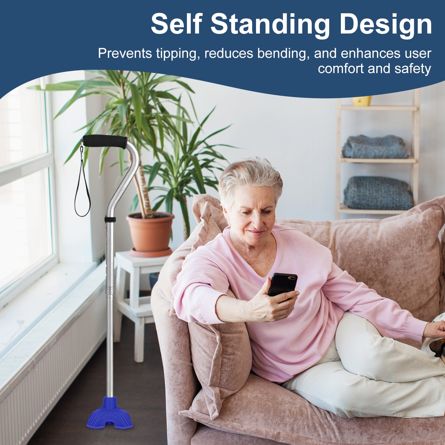 - Self-Standing Design: offers stability, keeps your cane upright at all times, prevents the cane from falling over, and reduces the need to bend over