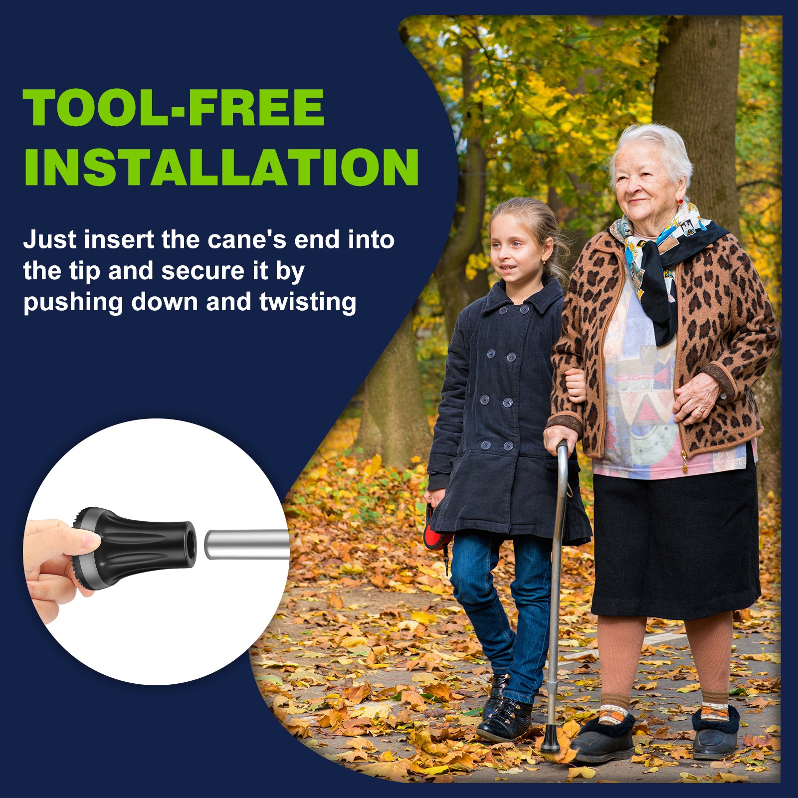- Tool-Free Installation: Easy to replace by simply pushing and twisting onto your cane—no tools required; carry a spare tip to avoid unexpected wear-outs