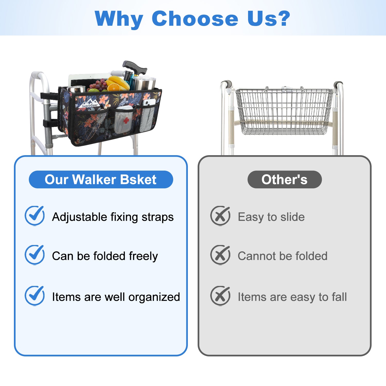 - Improve Mobility: It is more than just an accessory; carry daily necessities safely, no more juggling items or losing balance; empowers seniors with greater mobility and confidence