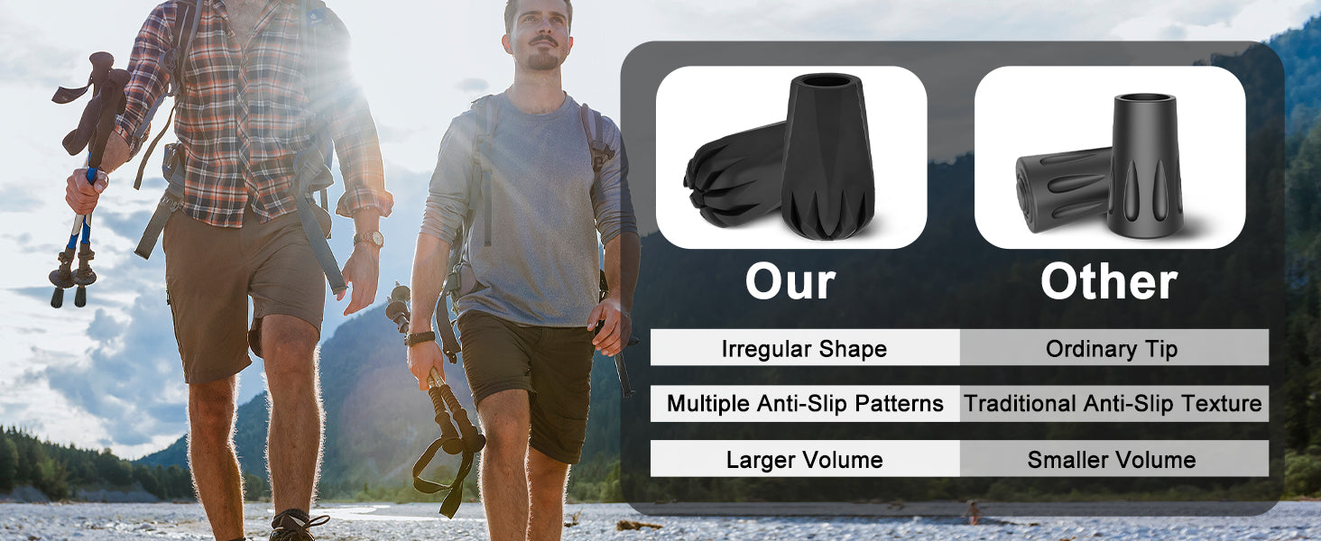 All-Terrain and All-Weather Use: Suitable for city streets, concrete, mud, stairs, sand, and more; protects pole tips while extending the lifespan of your trekking poles
