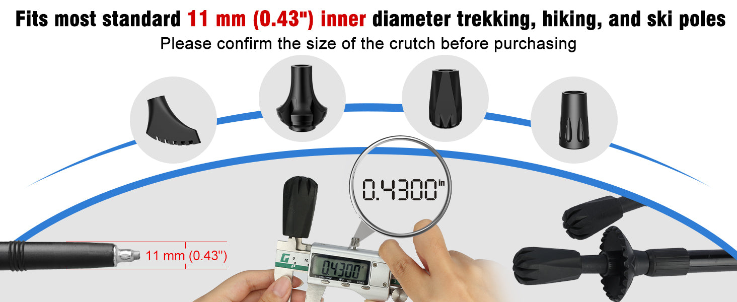 - Universal Fit: Fits most standard 11 mm (0.43") inner diameter trekking, hiking, and ski poles; easy to install—no tools needed