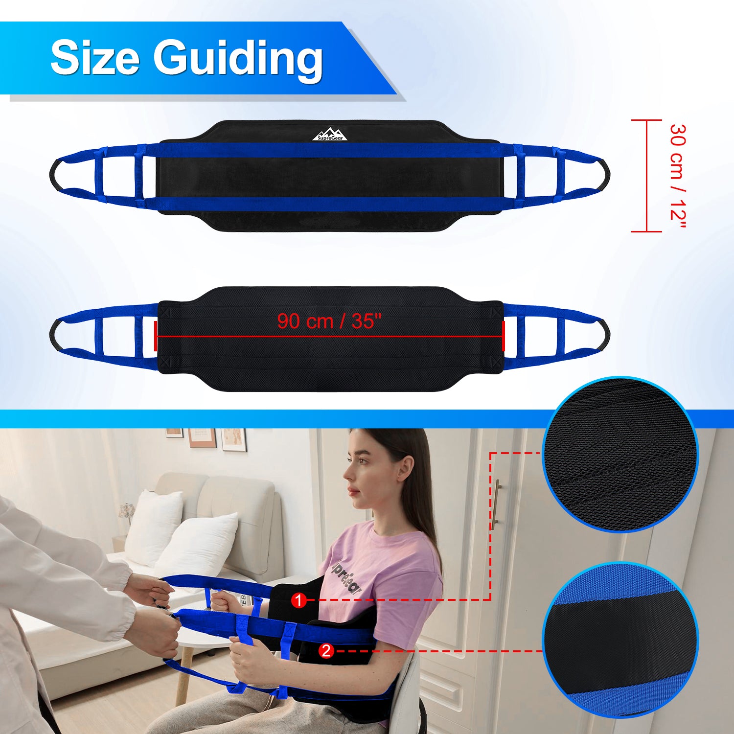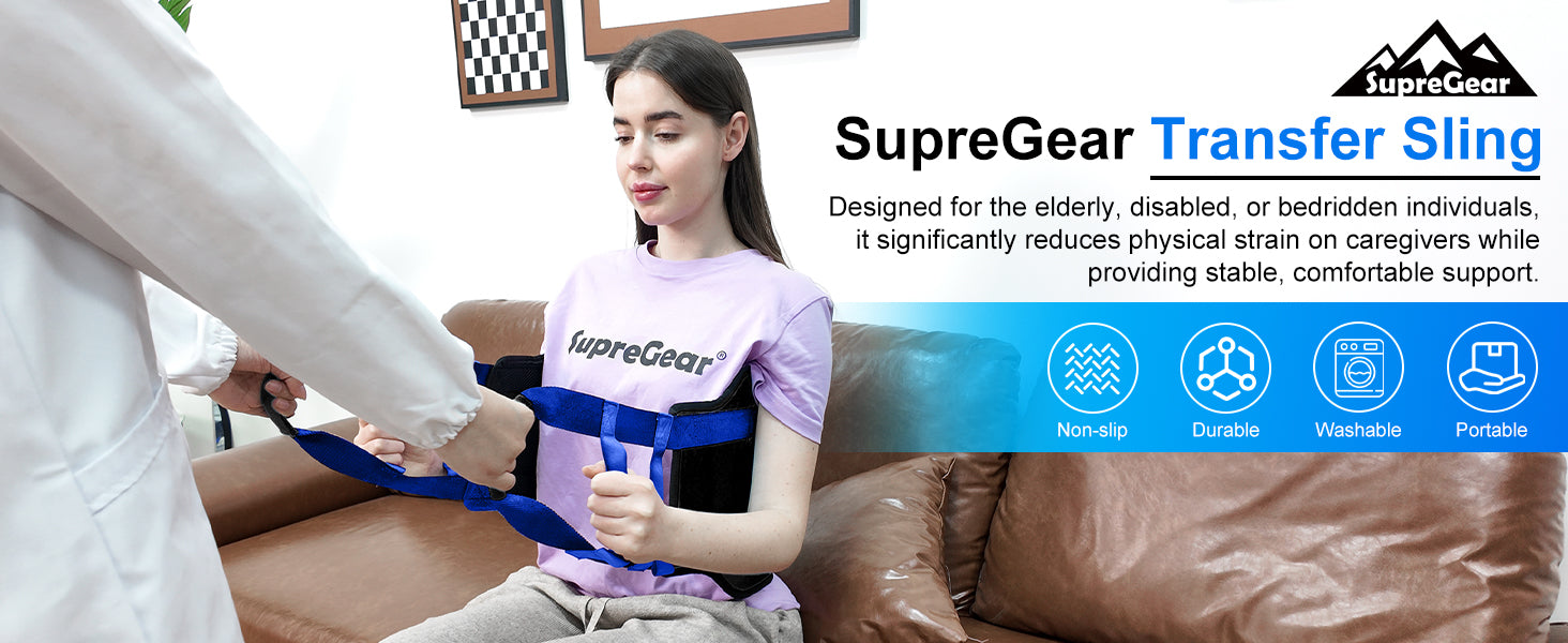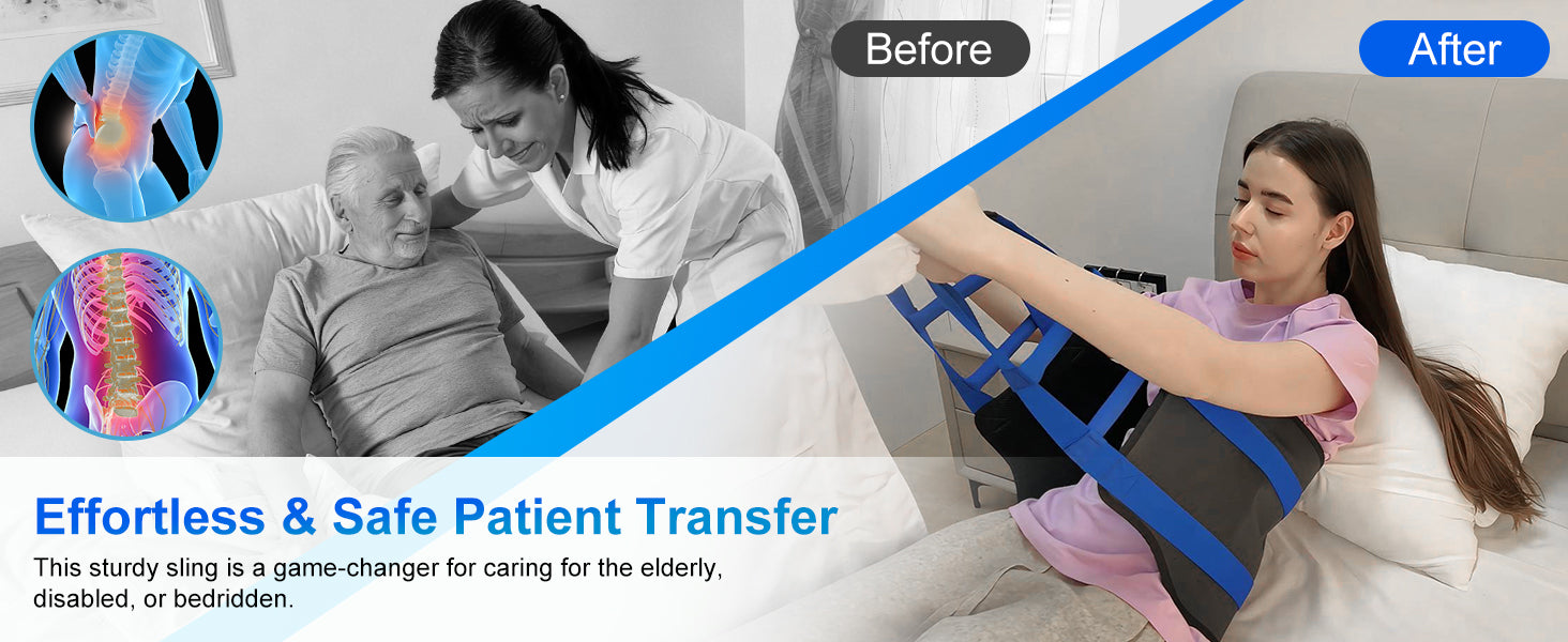 Enhanced Mobility and Safety: Durable transfer sling designed for elderly, disabled, or bedridden individuals; reduces caregiver strain while ensuring patient comfort and stability; ideal for home, hospital, or nursing facility use; size: 35" x 12" (90 x 30 cm)