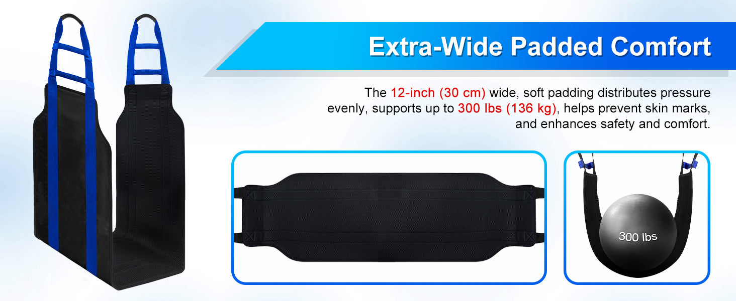 Secure and Comfortable Design: Made of heavy-duty polyester with reinforced stitching, tear-resistant and non-slip; extra-wide 12" (30 cm) soft padding evenly distributes weight up to 300 lbs (136 kg), enhancing safety and confidence