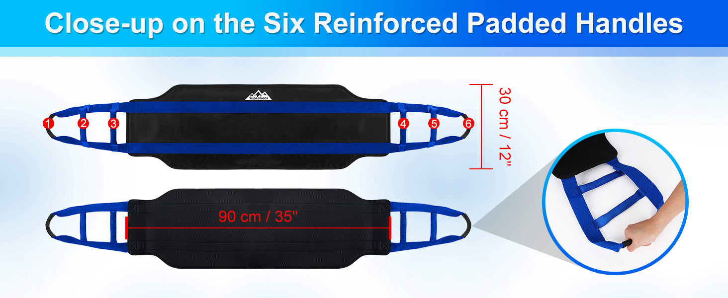 Padded Handles: 6 reinforced padded handles allow caregivers to lift and assist from multiple angles with ease