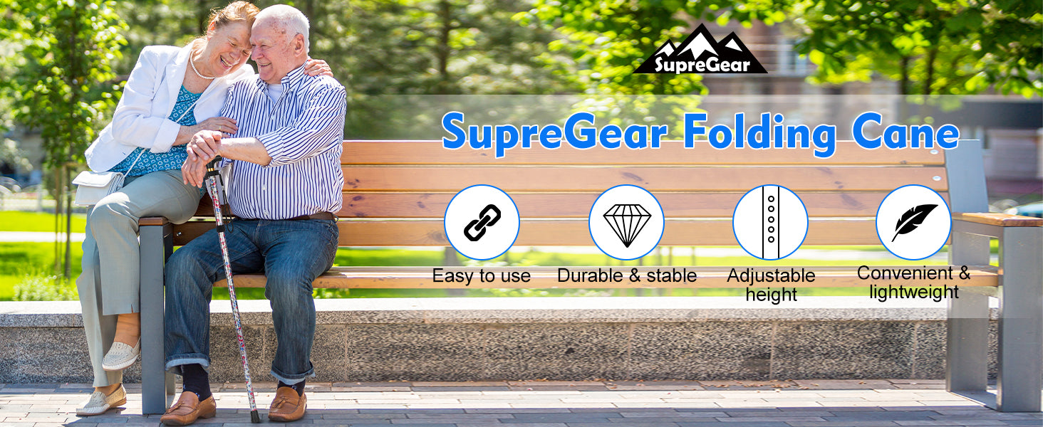 - Portable Foldable Design: The walking cane easily folds down to a compact 11 in (28 cm) for convenient storage and portability; it can be wrapped up quickly with a retaining clip, fitting comfortably into bags or luggage; when unfolded, the cane locks securely into position, ensuring safety and stability during use