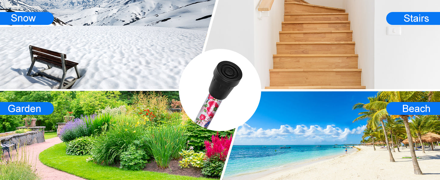 - Non-Slip and Stable Base: The cane is equipped with a metal-reinforced, enlarged non-slip rubber tip, offering excellent traction on various surfaces for enhanced stability and safety