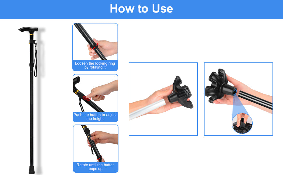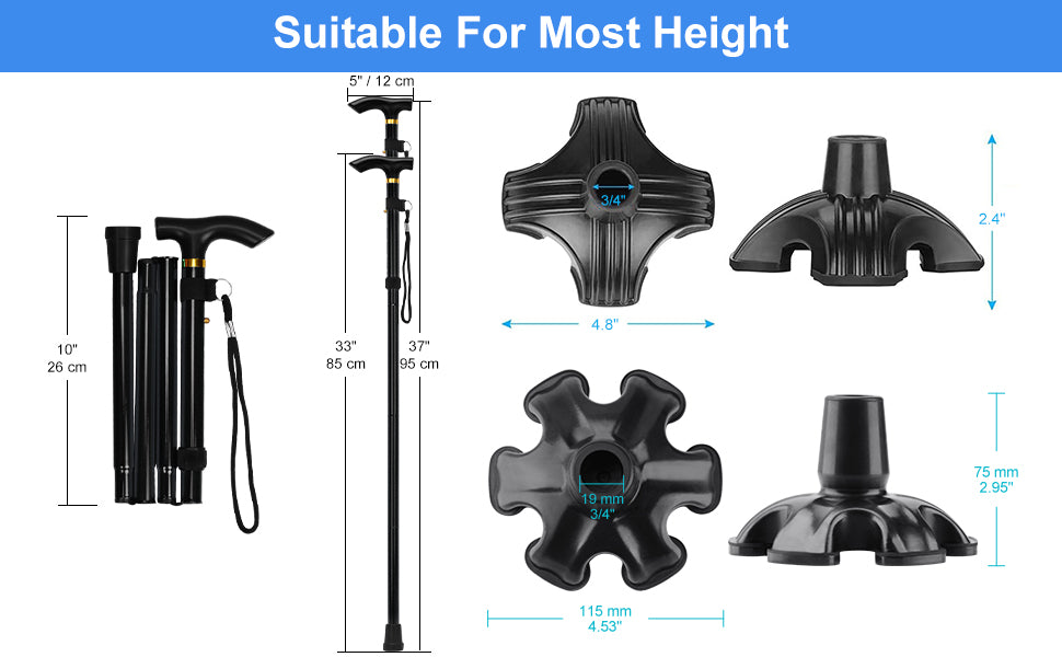 - Set Includes: Folding Cane x 1, Cane Tips (3/4" ) x 2; Perfect for seniors, individuals with disabilities, and those recovering from injuries or facing mobility challenges.