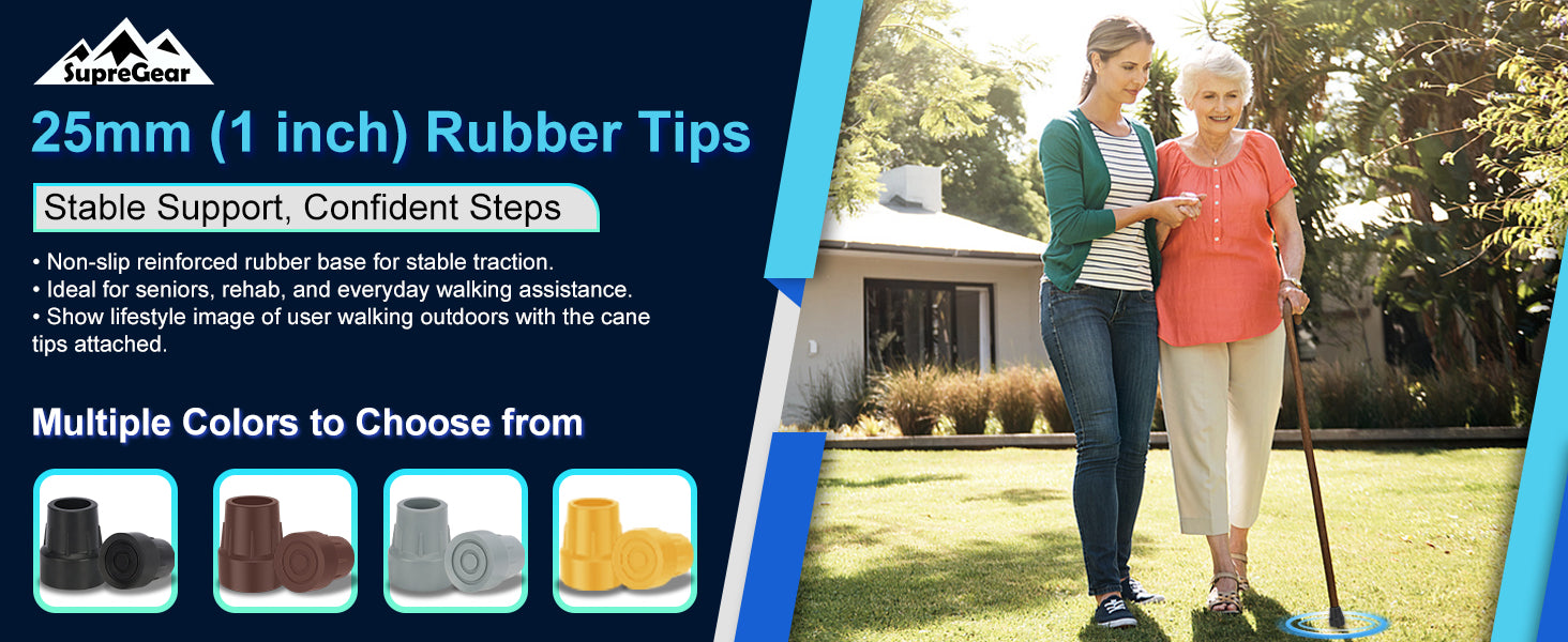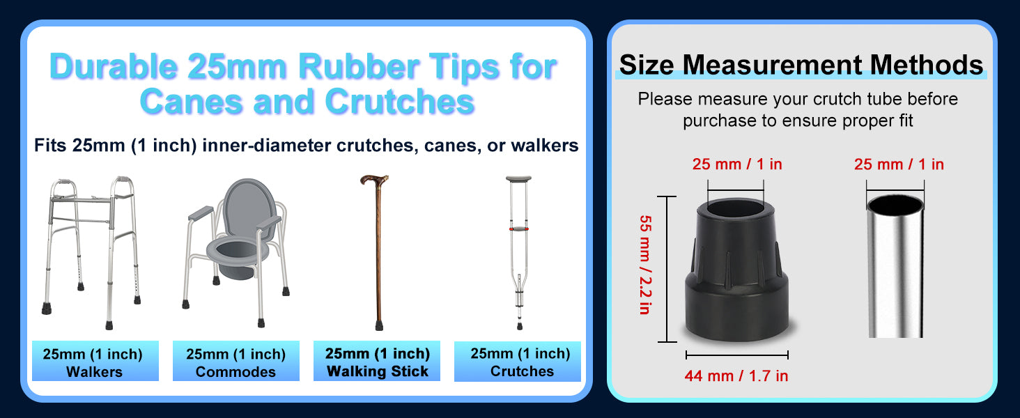 - Cane Tips Replacement: 6pcs cane tips 1 inch included, fit most aluminum and wood crutches, walkers, commodes, standard and folding canes with 1" legs