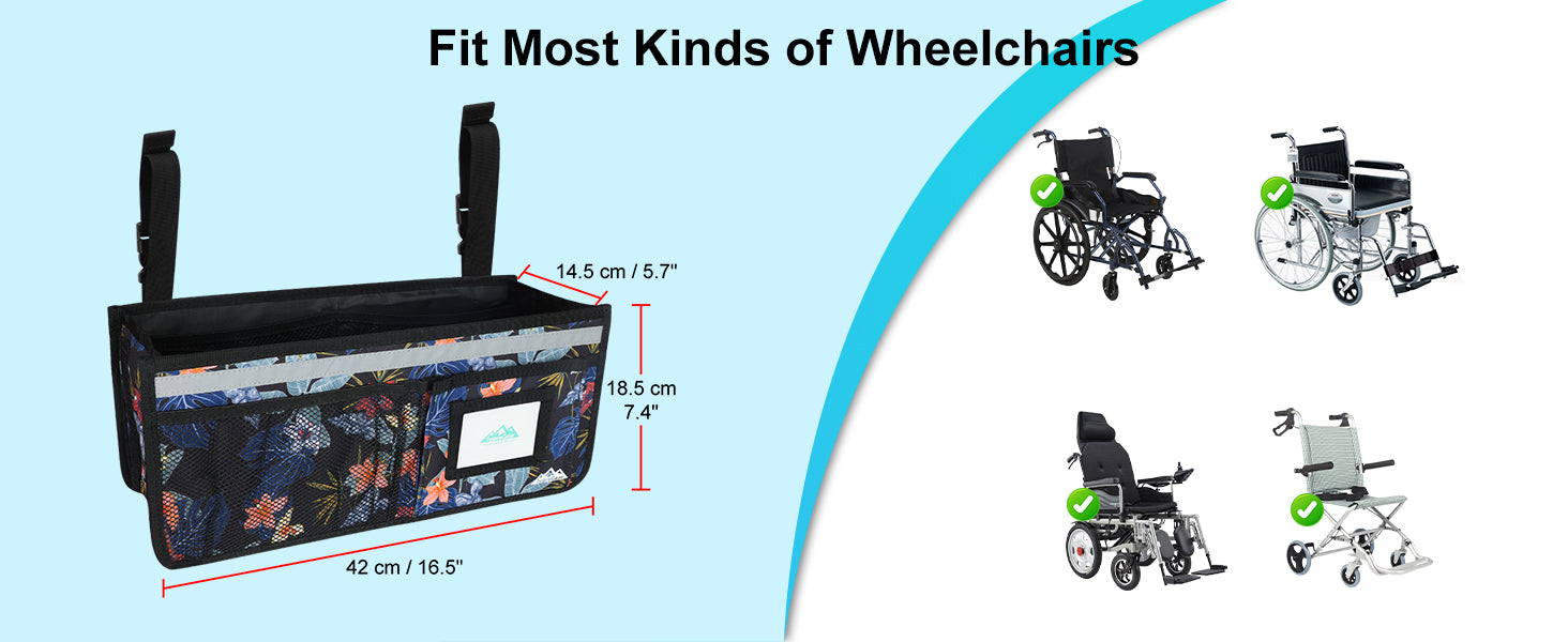 - Customized for Wheelchair: effortlessly accommodating most sizes and styles of wheelchairs, this basket is perfect for organizing and holding your daily essentials; overall dimensions: 16.5 x 7.3 x 5.7 inch