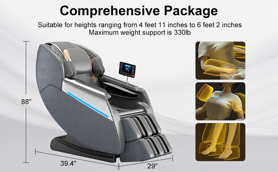 - Extended SL Track for Accurate Massage: The double SL-shaped guide rails ensure precise massage coverage from the neck to the thighs. With a 4 feet 9 inchs extended track, it expands the massage area by 50%+ and perfectly fits the body curve for accurate and effective massage. Maximum weight support is 330lb.