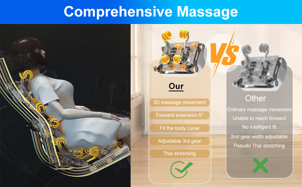 - Full-Body Massage with Airbag Technology: Experience ultimate comfort as 3D rollers massage from the neck to the thighs, relieving pain and pressure throughout the body. Equipped with airbags, it provides a comprehensive massage experience with six different techniques.
