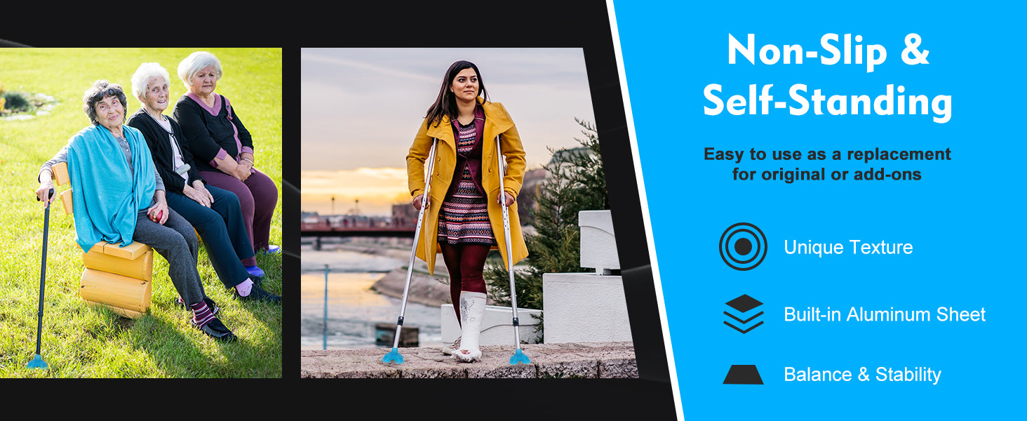 Self-Standing Cane Tip, Rubber Quad Base for Canes & Walking Sticks