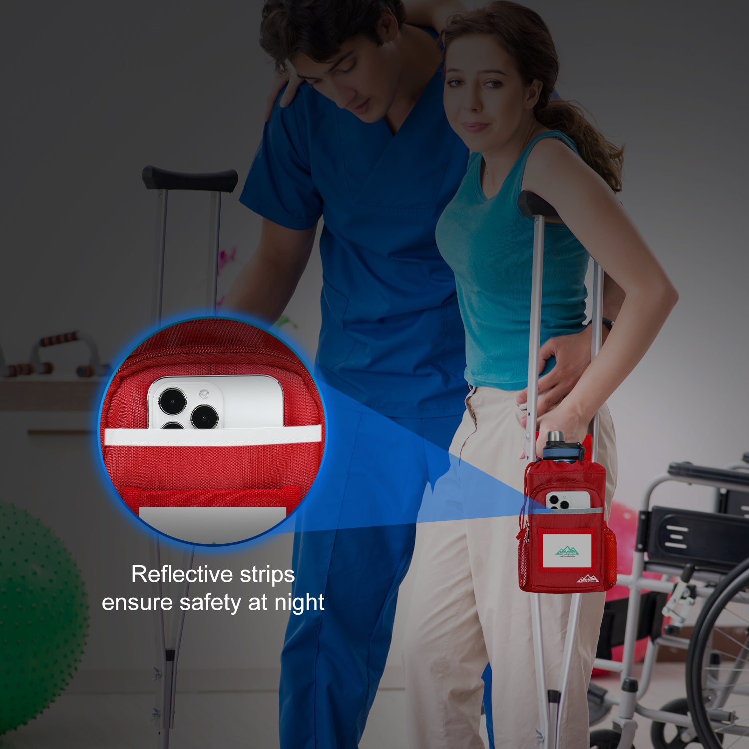 - Premium Material: Made of 900D waterproof Oxford, polyester and nylon fabric, this Crutch pouch is scratch-resistant and easy to clean; Safety reflective strips ensure your safety at night or in dim environments, keeping you away from any danger in dark
