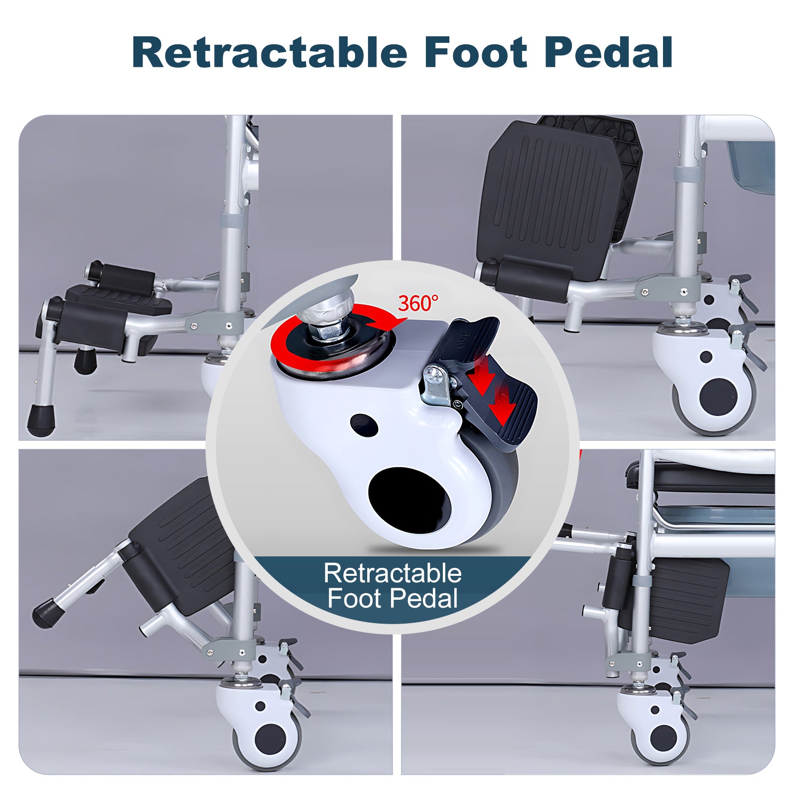 - Stable & Easy to Clean: Features anti-slip ABS handle grips and armrests for secure support. Includes a removable bottom bucket for hassle-free cleaning. Foldable footrests prevent tipping and can be flipped up to save space. Dual cross-bar reinforcement on both sides enhances stability and prevents wobbling.